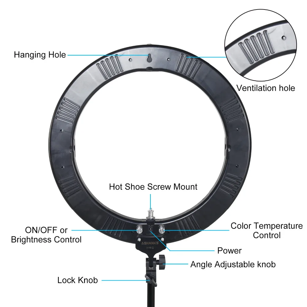 . Vente ASHANKS 18 pouces LED Anneau de Lumière Circulaire Photographie Éclairage avec Trépied 5500 k 240 pcs LED Caméra Photo Studio Téléphone vidéo Lampe Pas Cher Prix.