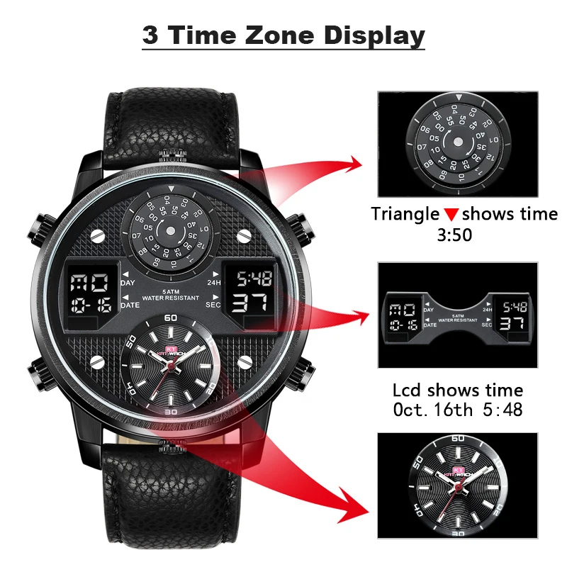 . Achat KAT WACH Hommes D affaires de Montres Chronographe Analogique Quartz Montre Hommes Date Lumineux Étanche Bracelet En Cuir De Mode Montre Bracelet Pas Cher En Ligne.