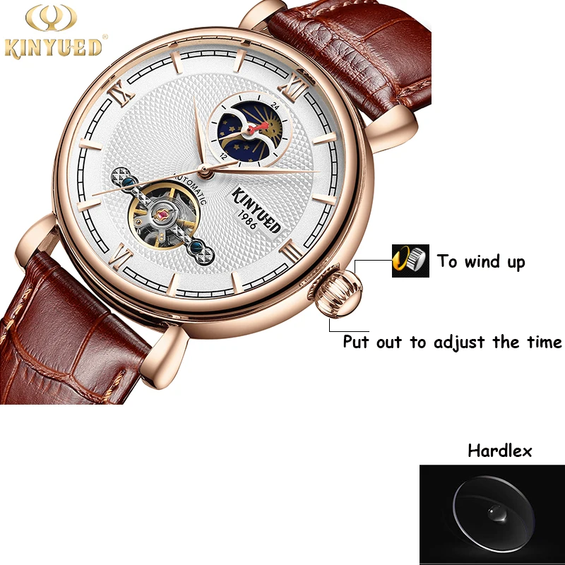 . Achat Kinyued Nouvelle Mécanique Montres Hommes Automatique Phase de Lune Étanche Main Montre Tourbillon Mâle De Mode Bracelet En Cuir Montre Bracelet Pas Cher En Ligne.