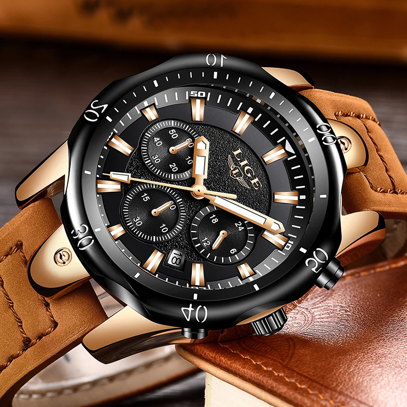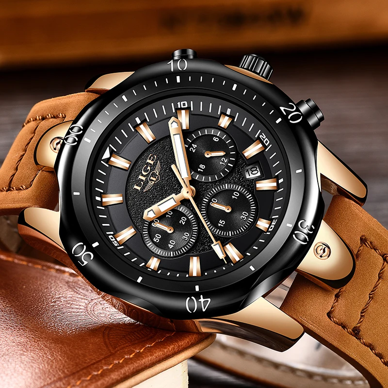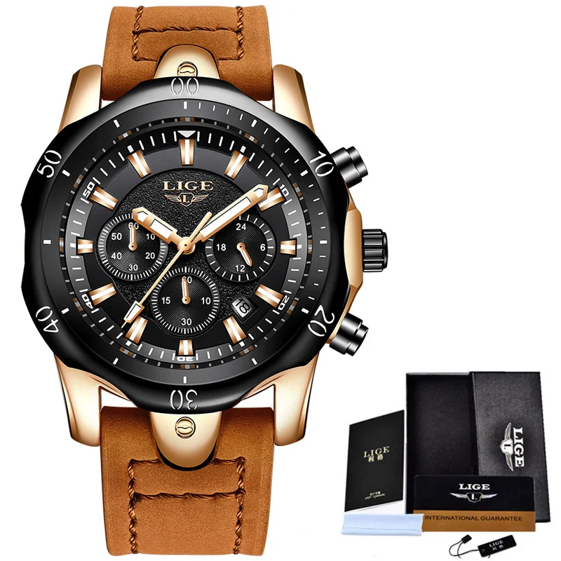 Acheter 2018 LIGE Mens Montres Marque De Luxe Or Montre À Quartz Hommes En Cuir Décontractée Militaire Étanche Sport Montre Bracelet Relogio Masculino Pas Cher En Ligne
