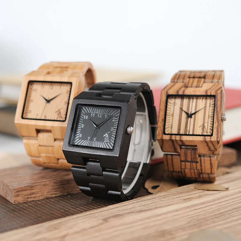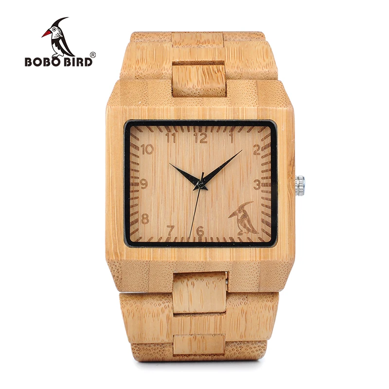 Achat Meilleur BOBO BIRD Montres En Bois de Bambou Hommes Montres Top Marque De Luxe Rectangle En Bois Design Bande Montre pour hommes Pas Cher En Ligne.