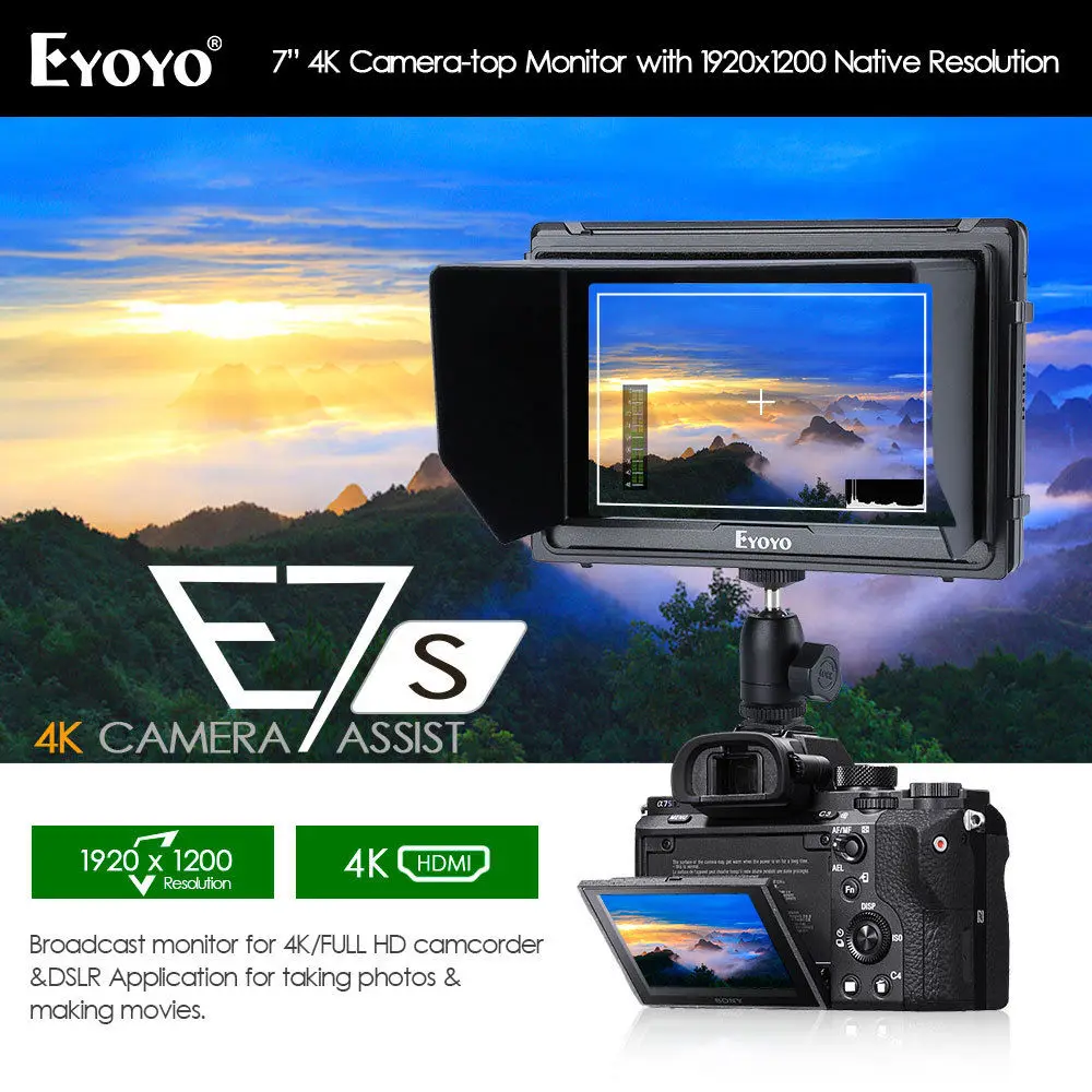 . Acheter Eyoyo E7S 7 pouce Utra Mince IPS Full HD 1920x1200 4 k HDMI Sur caméra Vidéo Domaine moniteur pour Canon Nikon Sony DSLR Caméra Vidéo Pas Cher En Ligne.