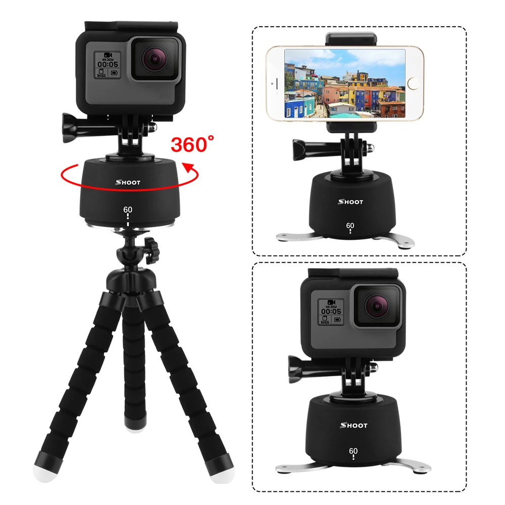 Acheter Meilleur TIRER 360 Degrés Rotation Panoramique Rotule Base Time Lapse Auto Rotation Trépied Pour GoPro 7 6 5 Yi 4 k D action Caméra Mobile Téléphone Pas Cher Prix.
