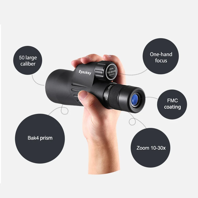 . Acheter Eyeskey Zoom Monoculaire 10 30x50 Bak4 Prisme Puissant Télescope Monoculaire Étanche Chasse Marchandises pour Camping avec Trépied Pas Cher En Ligne.