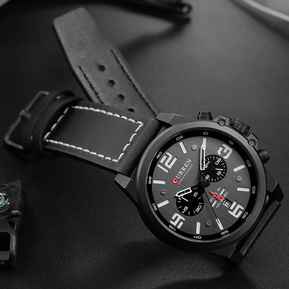 Achat Hommes Militaire Sport Quartz Montre Bracelet CURREN Casual Véritable Cuir Imperméable Chronographe Montre Homme D affaires Suivre Horloge Pas Cher En Ligne