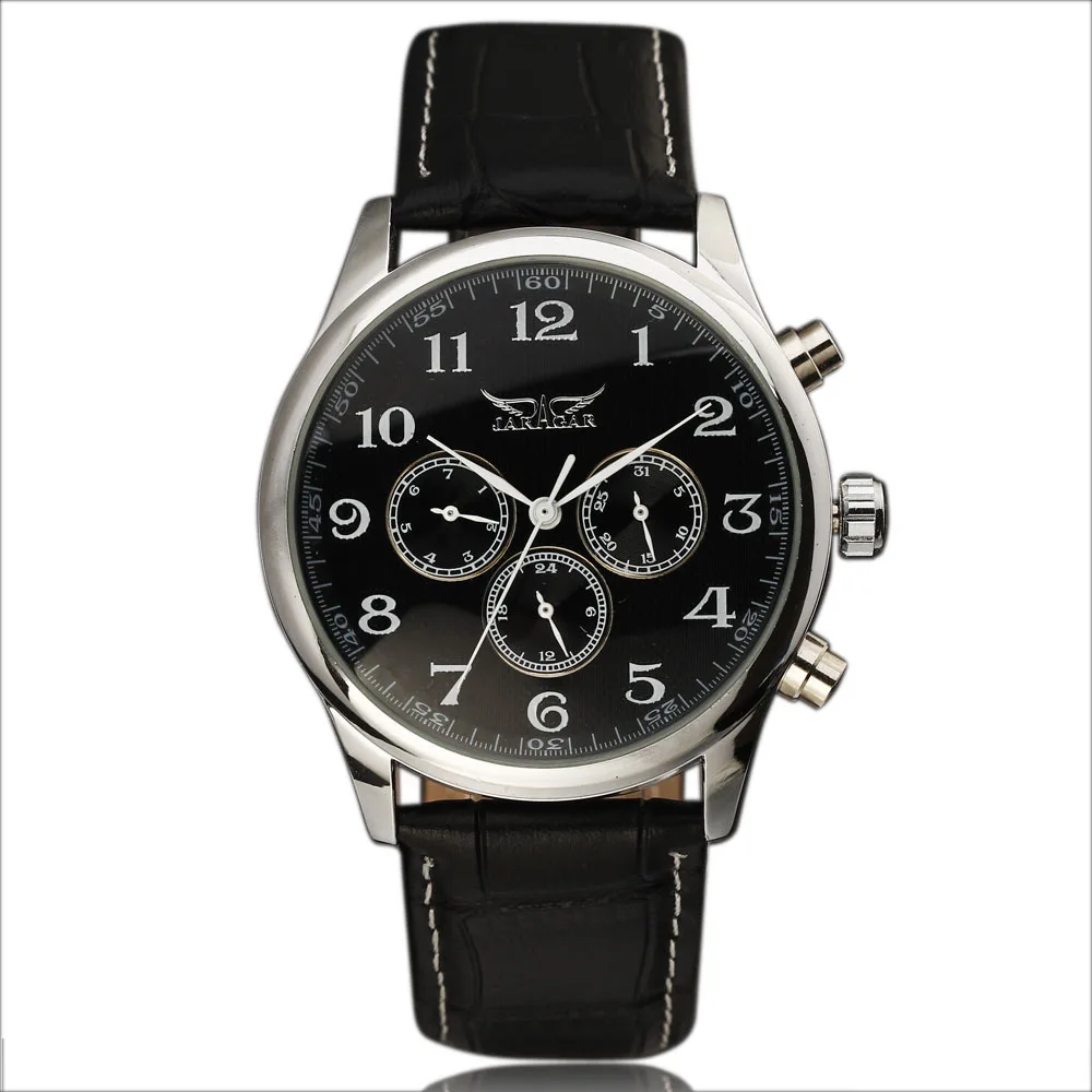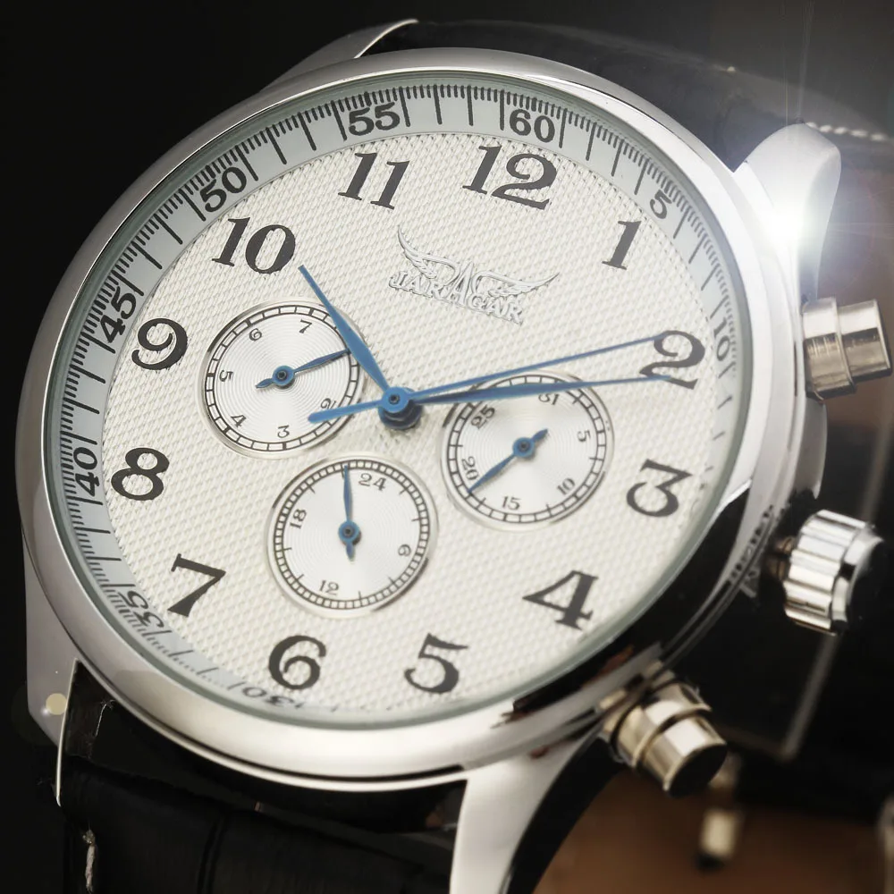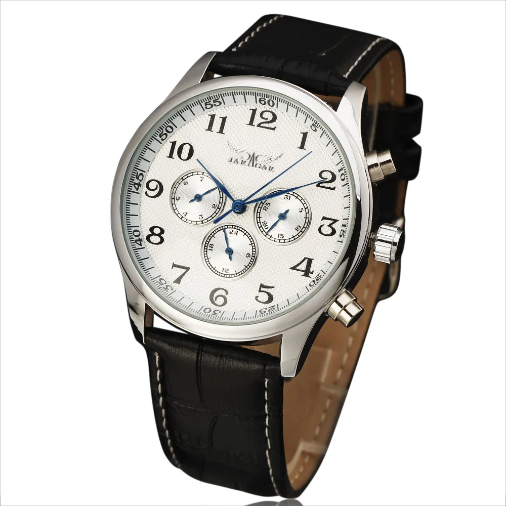 Acheter Nouveau Mode JARAGAR Automatique Mécanique Auto Vent Sport Mince Cas Calendrier 24 Heures Semaine Cadran Réel Bracelet En Cuir Hommes Montre bracelet Pas Cher En Ligne