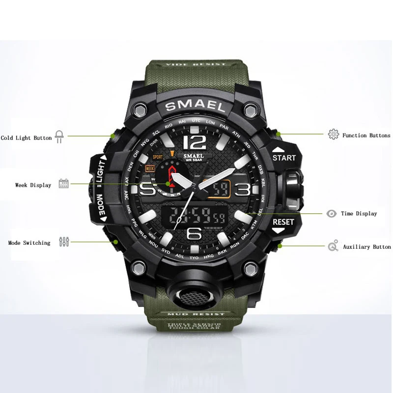 . Acheter SMAEL Marque Double Affichage Montres Militaire Alarme Quartz Horloge Mâle Cadeau LED Numérique Hommes de Montre de Sport pour Hommes Heures relogio Pas Cher Prix.