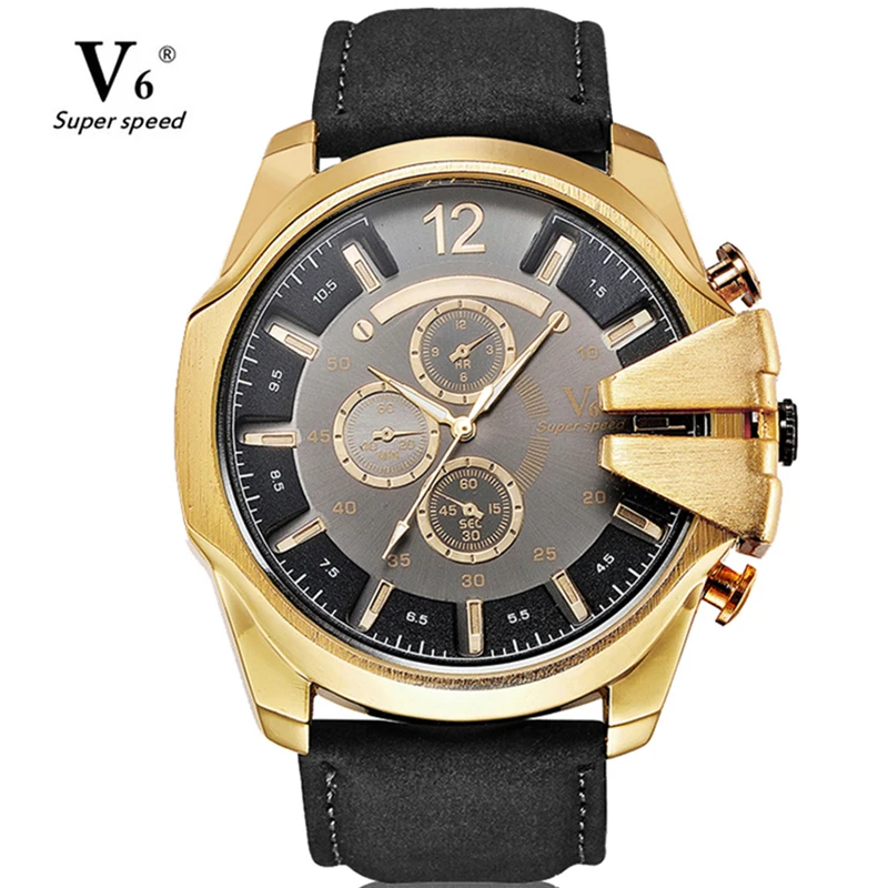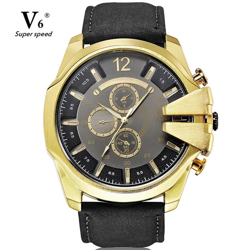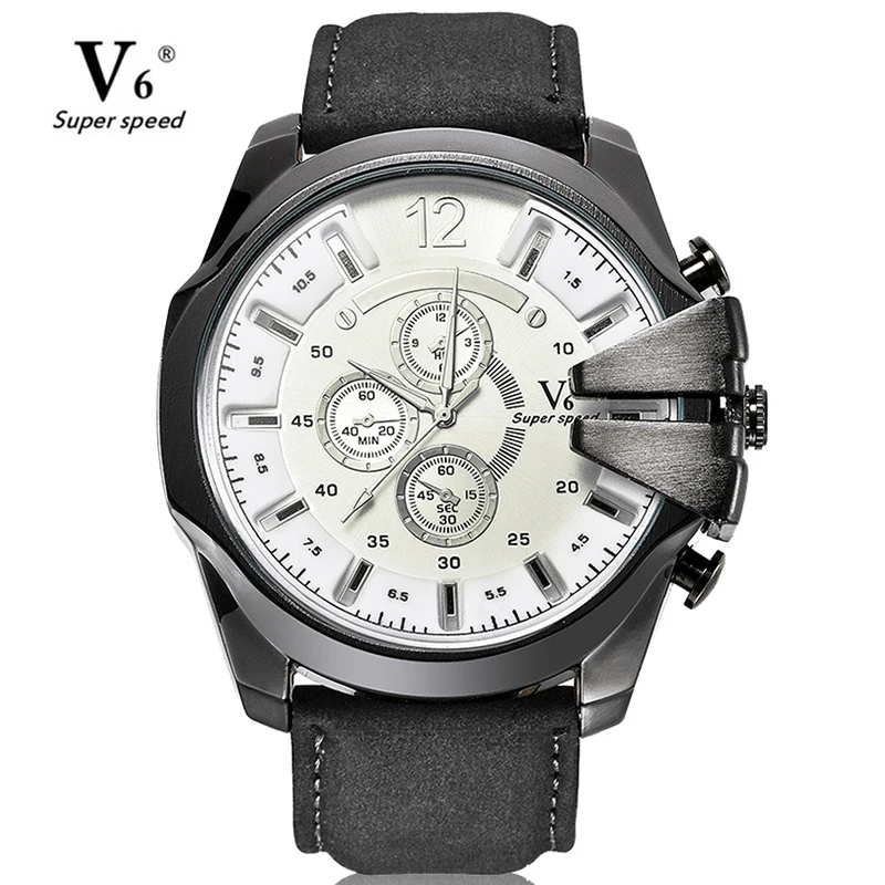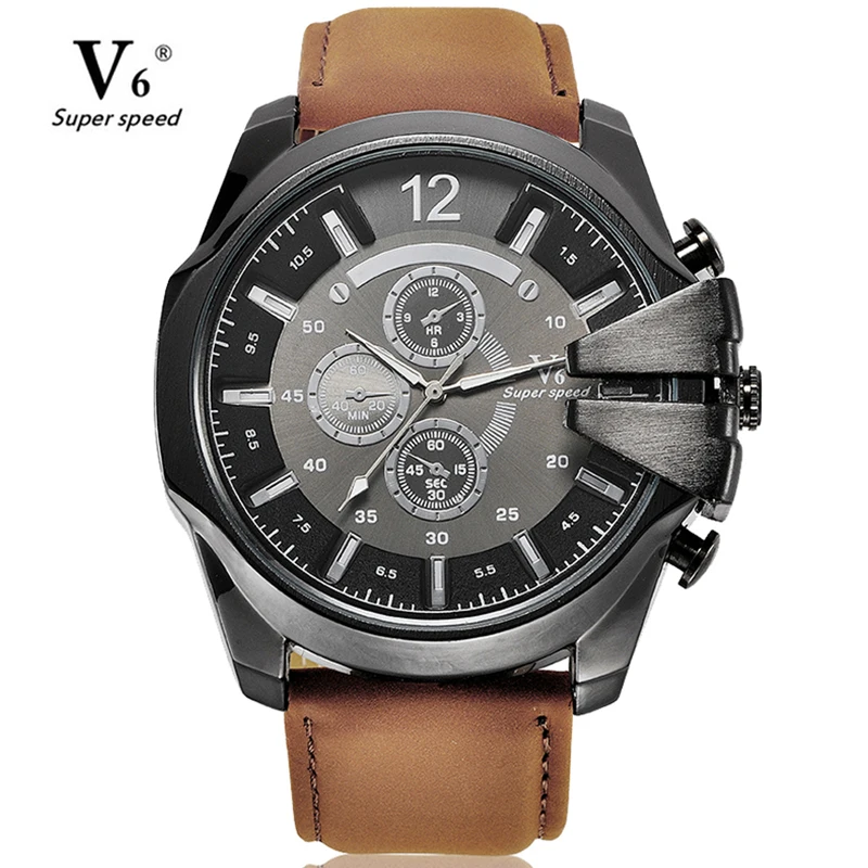 Acheter Hommes De Luxe Occasionnels V6 Montre En Cuir Militaire Quartz Fashion Business Mâle Grande Taille Montre Heure Horloge Relogio Masculino Pas Cher Prix