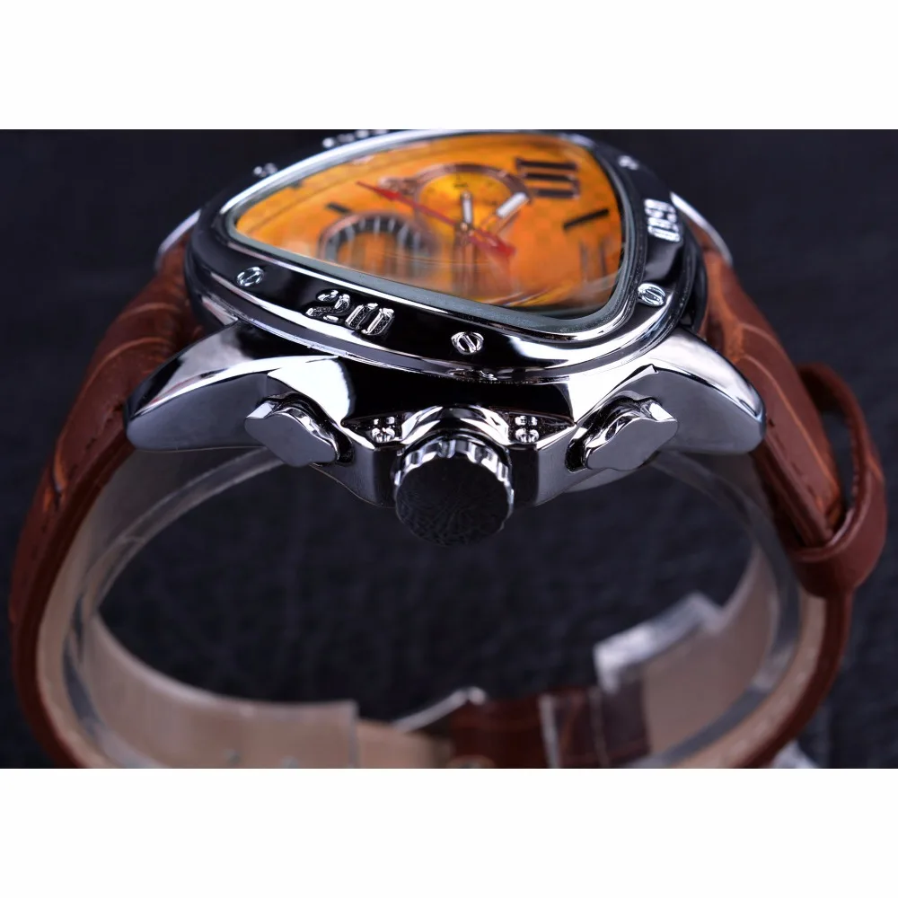 Vente Jaragar Sport Design De Mode Géométrique Triangle Cas Brun Bracelet En Cuir 3 Cadran Hommes Montre Top Marque De Luxe Montre Automatique Horloge Pas Cher Prix