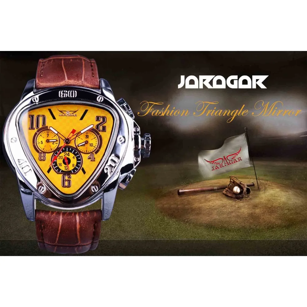 Acheter Meilleur Jaragar Sport Design De Mode Géométrique Triangle Cas Brun Bracelet En Cuir 3 Cadran Hommes Montre Top Marque De Luxe Montre Automatique Horloge Pas Cher Prix.