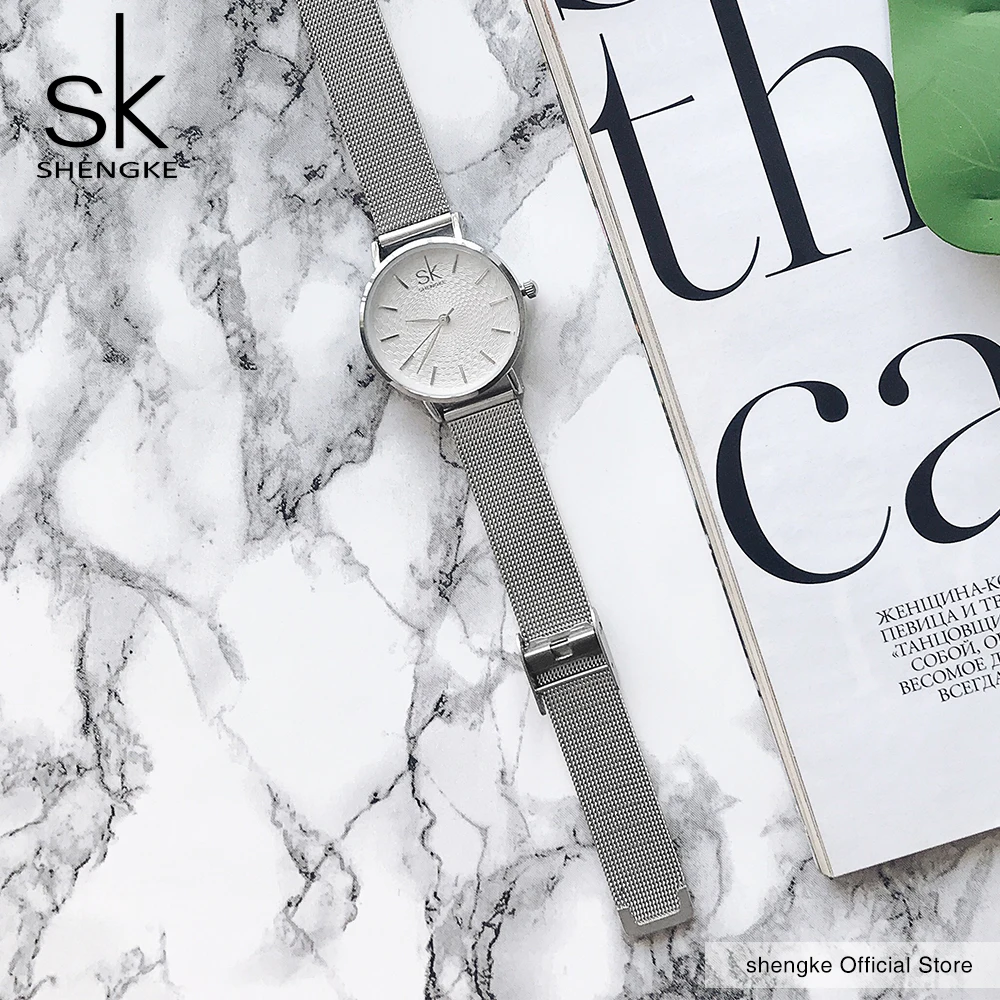 Acheter SK Super Mince Argent Maille En Acier Inoxydable Montres Femmes Top Marque De Luxe Casual Horloge Dames Montre Bracelet Dame Relogio Feminino Pas Cher Prix