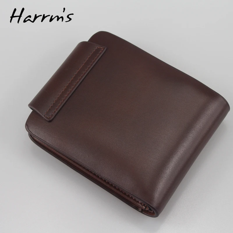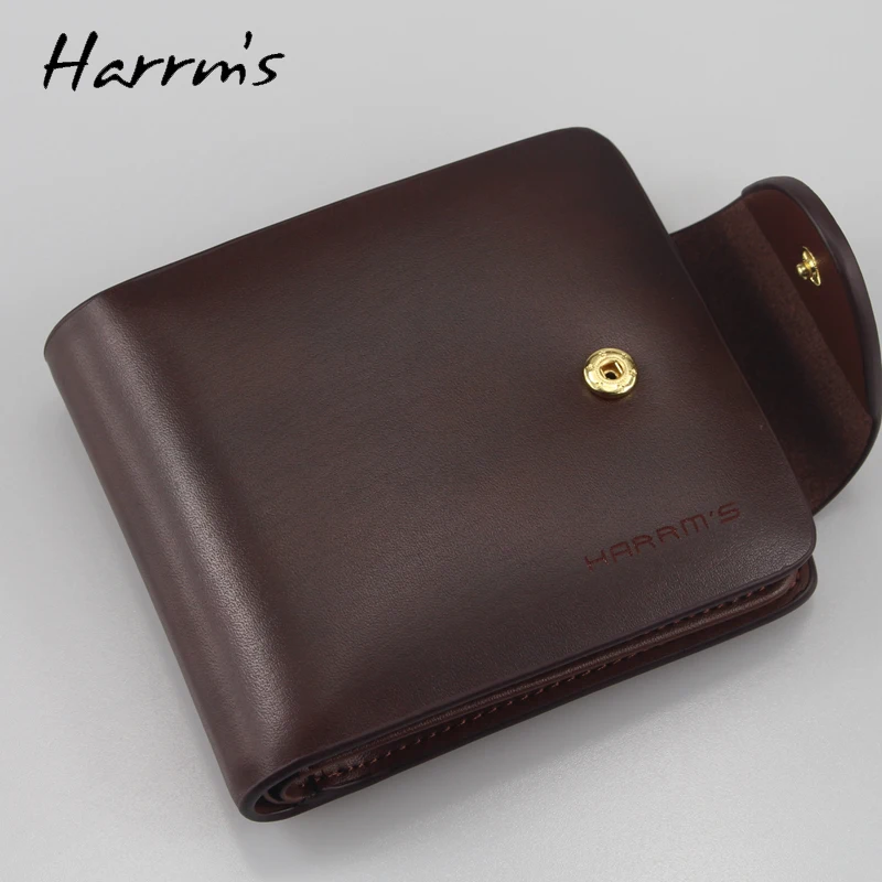 Acheter Meilleur Harrms courte Pour Homme de marque style couleur marron vachette hommes portefeuilles homme en cuir véritable portefeuilles avec or métal moraillon Pas Cher Prix.