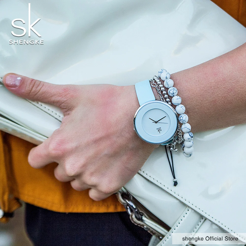 . Acheter Shengke Marque Femmes De Luxe Montres Femme En Cuir Blanc Montre Bracelet Mixmatch Robe Horloge À Quartz Ultra Mince Relogio Feminino 2018 Pas Cher Prix.
