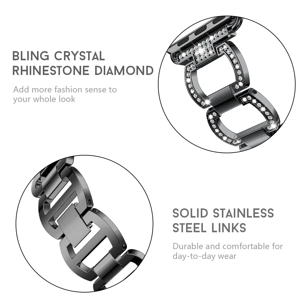 Achat Bracelet En Acier inoxydable pour Apple Montre Bande Strass Diamant Bande 38mm 42mm Série 3 2 1 pour Apple montre 40mm 44mm Série 4 Pas Cher En Ligne