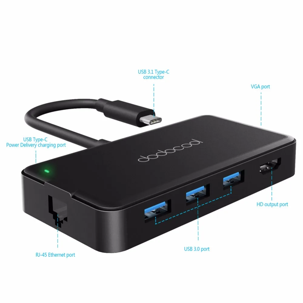 Acheter Dodocool Multifonction Hub USB avec Type c Alimentation 4 k Vidéo HD VGA USB Port 7 in1 USB 3.0 Moyeu Pour Samsung Galaxy S9 S8 Pas Cher Prix