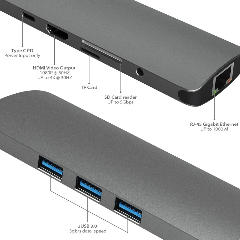 . Vente JZYuan 9 en 1 USB C 3.1 MOYEU à Type C PD HDMI 3.5mm Audio RJ45 Ethernet LAN Adaptateur SD Lecteur De Carte TF HUB USB C Pour Macbook Pas Cher En Ligne.