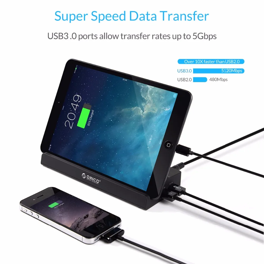 Vente ORICO SH4C2 USB3.0 HUB avec Station D accueil 4 USB3.0 1 Super Chargeur 1 Universel De Charge Port avec Stand pour Surface noir Pas Cher En Ligne