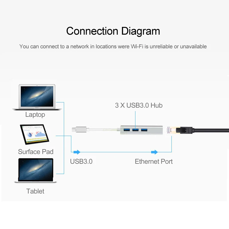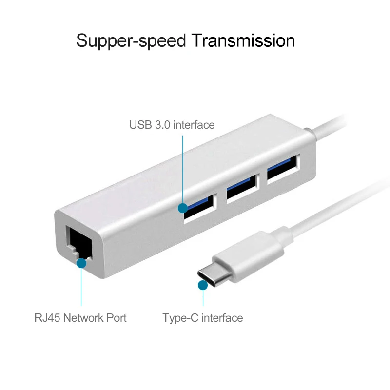 Acheter 3 Ports USB 3.0 HUB Type C Thunderbolt 3 à RJ45 100 Mbps Ethernet LAN Adaptateur Données Type C filaire Carte Réseau Pour Macbook Pas Cher Prix