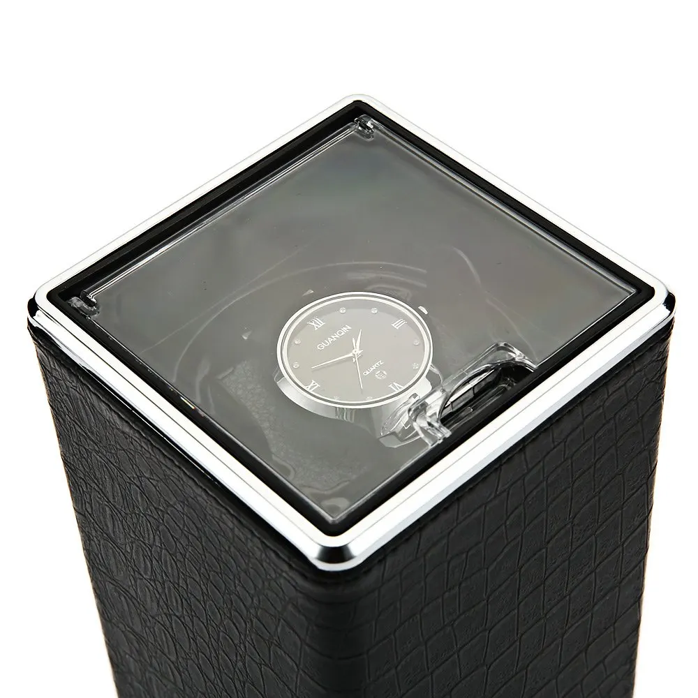 Acheter Automatique Boîte De Montre De Rotation Enrouleur Affichage Boîtes Couvercle Transparent Bijoux De Stockage Organisateur US Plug Caixa De Relogios Pas Cher En Ligne