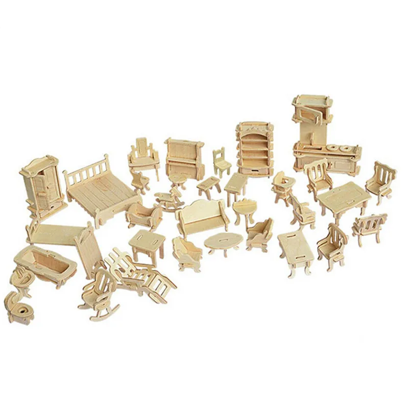 Vente Meilleur 34 pcs ensemble Miniature 112 Dollhouse Meubles pour Poupées, Mini 3D Puzzle En Bois BRICOLAGE Bâtiment Modèle Jouets pour Enfants Cadeau Pas Cher Prix.