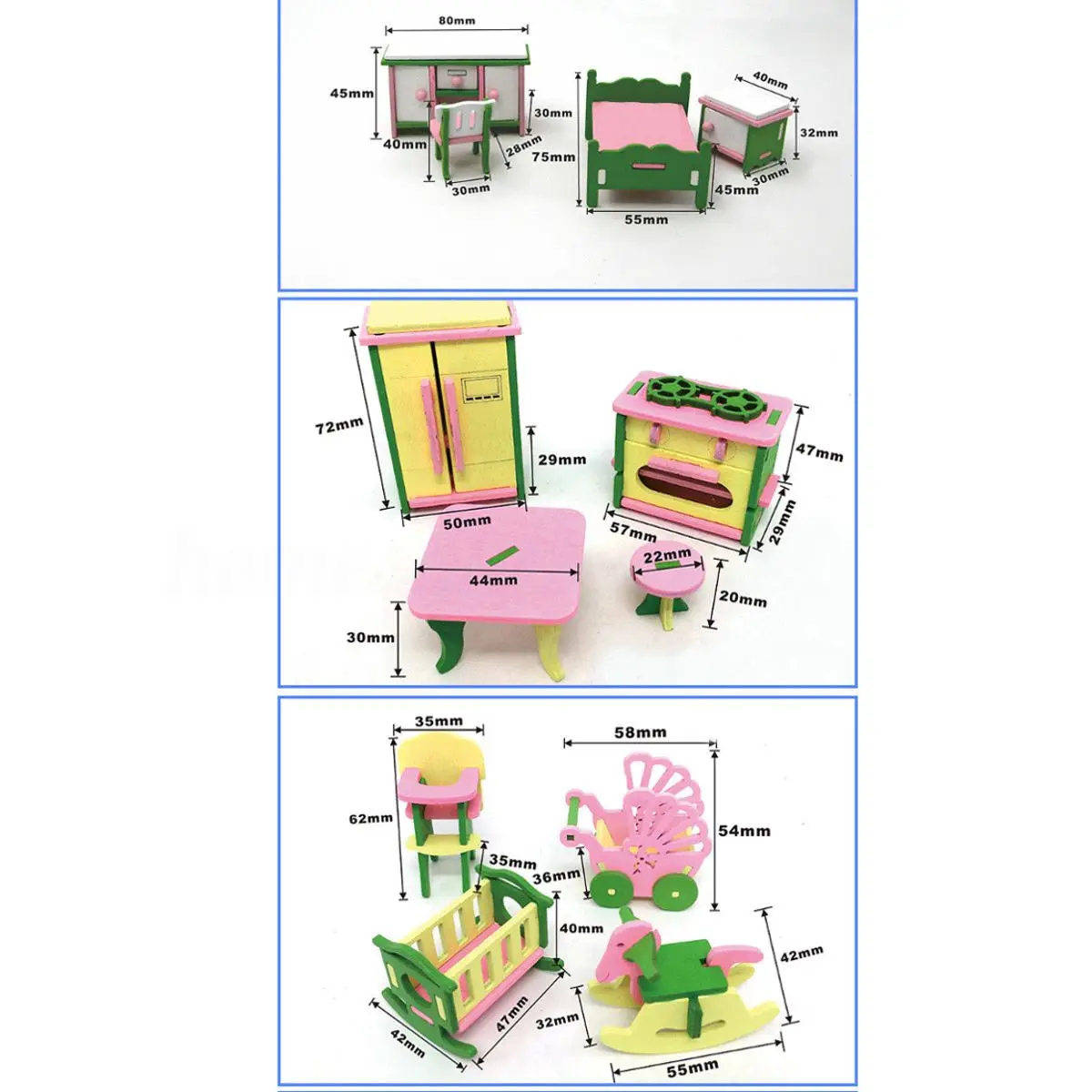 . Achat 49 pcs 11 ensembles Bébé Meubles En Bois Maison de Poupée Miniature Enfant Jouer Jouets Cadeaux Pas Cher En Ligne.