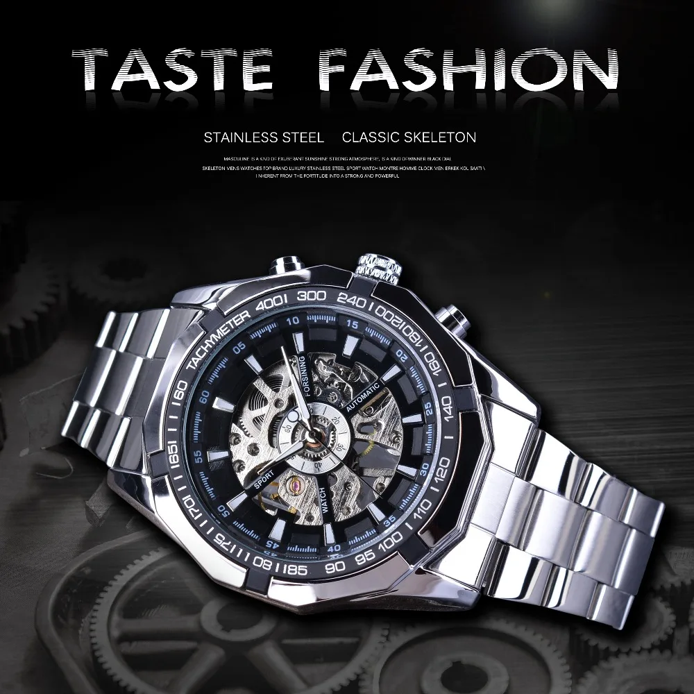 Achat Meilleur Forsining 2017 Argent En Acier Inoxydable Étanche Mens Squelette Montres Top Marque De Luxe Transparent Mécanique Mâle Montre Bracelet Pas Cher En Ligne.