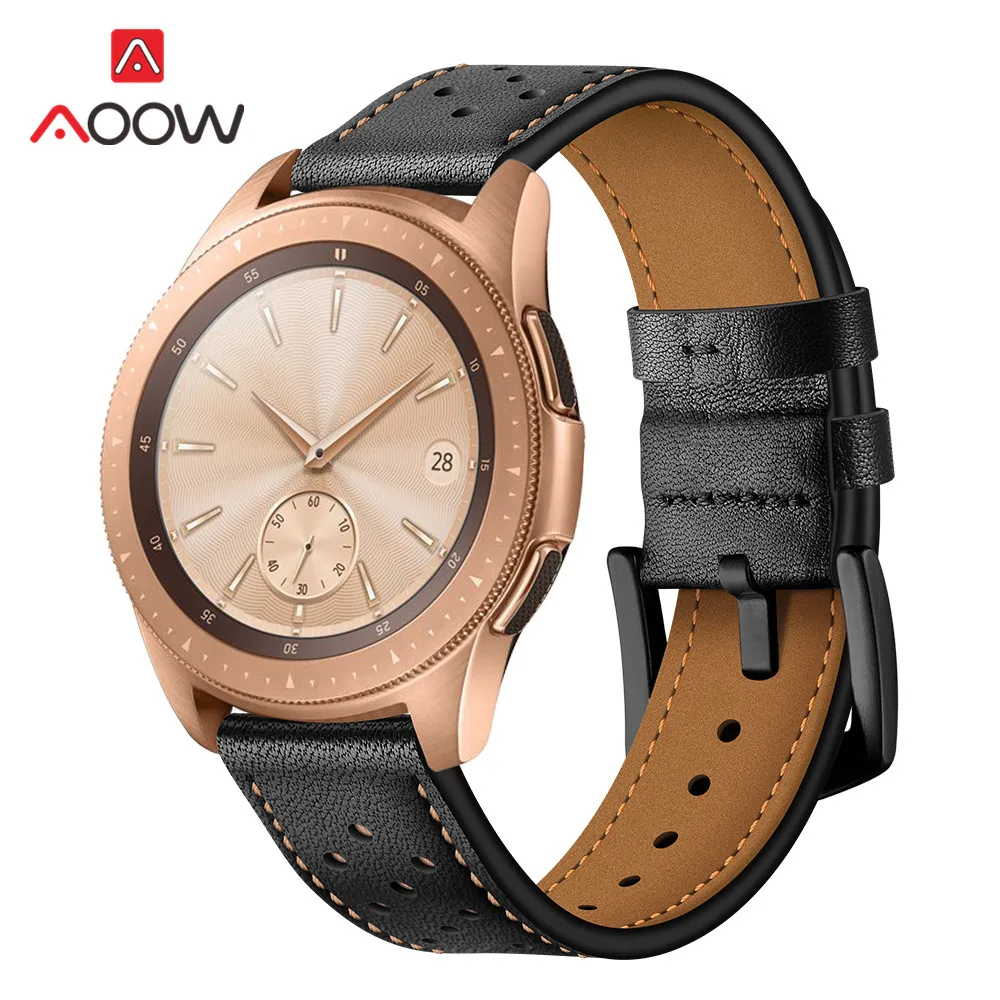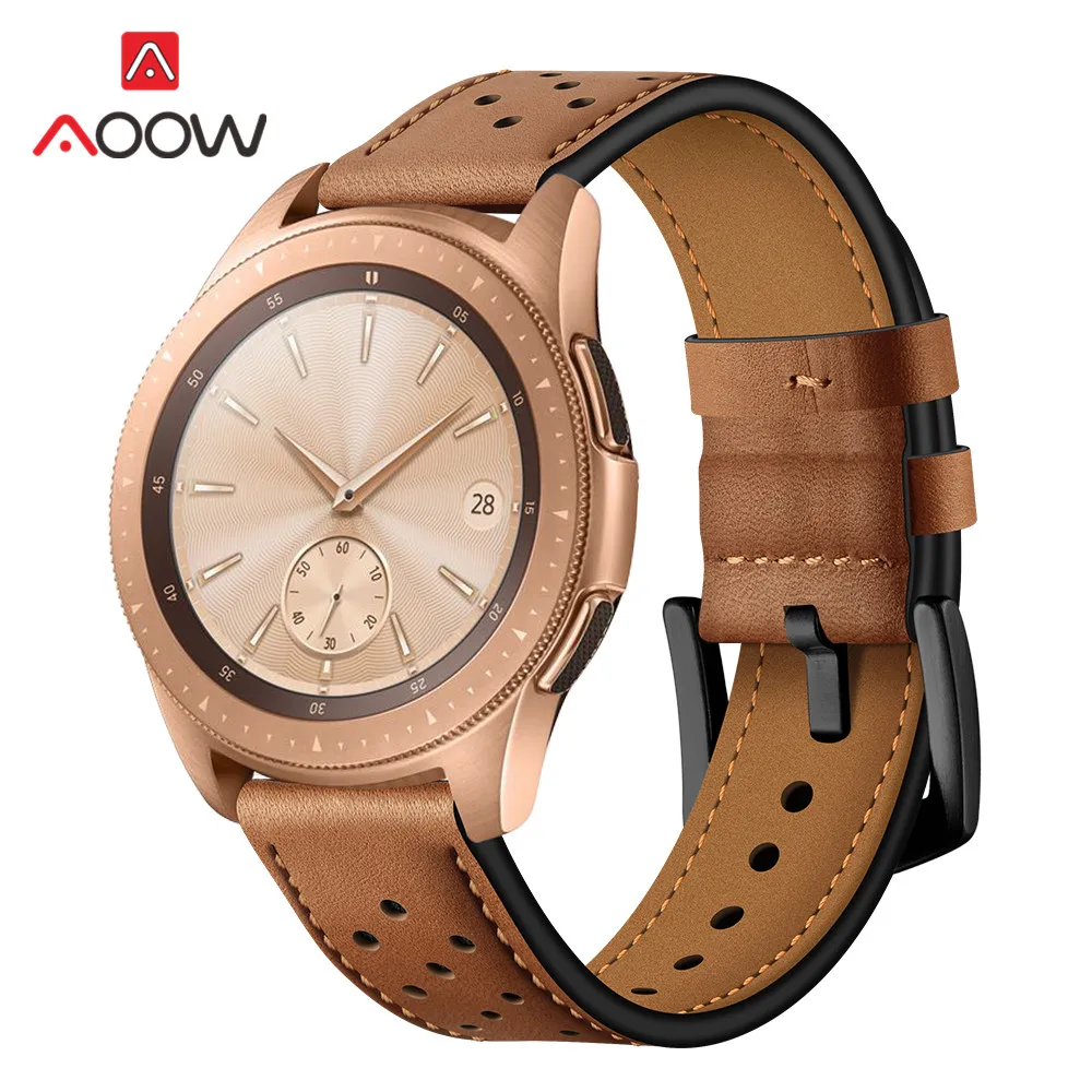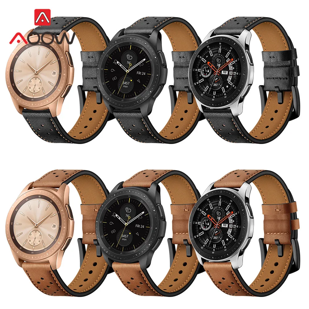 Achat Meilleur 20mm 22mm Véritable Bracelet En Cuir pour Samsung Galaxy Montre 42mm 46mm version Noir Brun Trous Remplacement bracelet Sangle Bande Pas Cher Prix.