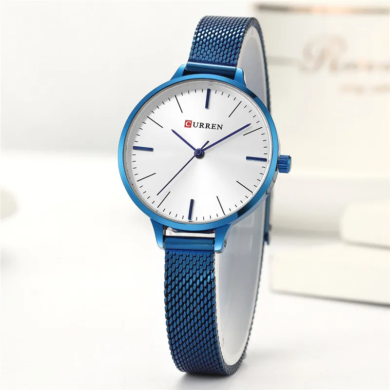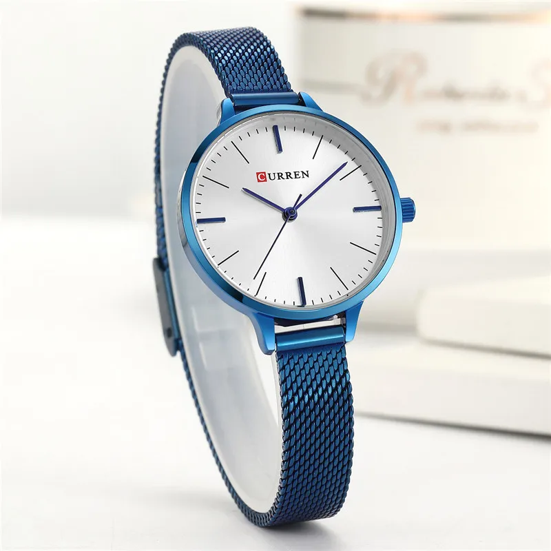 Achat CURREN Femmes Montres Top Marque De Luxe Dames Montre Bleu Acier Inoxydable Bande Classique Robe Bracelet Femelle Horloge Amant Cadeau 9022 Pas Cher En Ligne