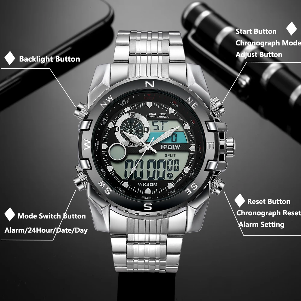 Achat Marque de luxe Hommes Sport Militaire Montres Hommes de Quartz LED Chronos Analogique Horloge Mâle Numérique Montre Bracelet Relogio Masculino Pas Cher En Ligne