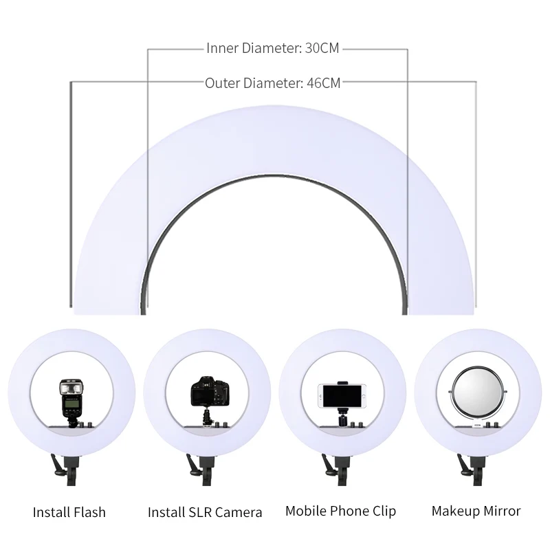 Vente Meilleur 18 pouces LED Photographie La Lumière 50 w 480 pcs LED Light Ring Bi couleur 3200 k 5600 k photo Studio Vidéo Maquillage Lampe Avec Trépied Stand Pas Cher En Ligne.