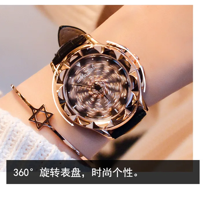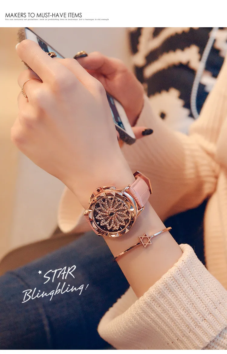 Achat 2017 Femmes Strass Montres Dame Rotation Robe Montre marque Réel Bande de Cuir Grand Cadran Bracelet Montre Bracelet En Cristal Montre Pas Cher En Ligne