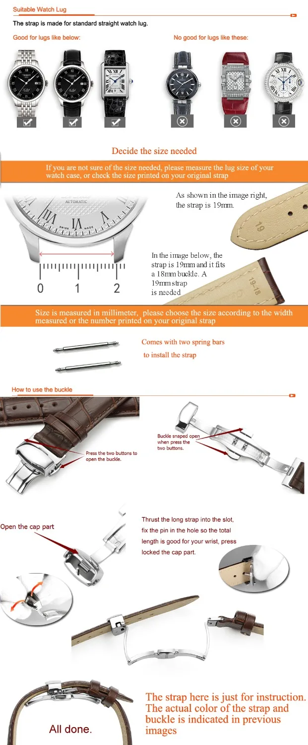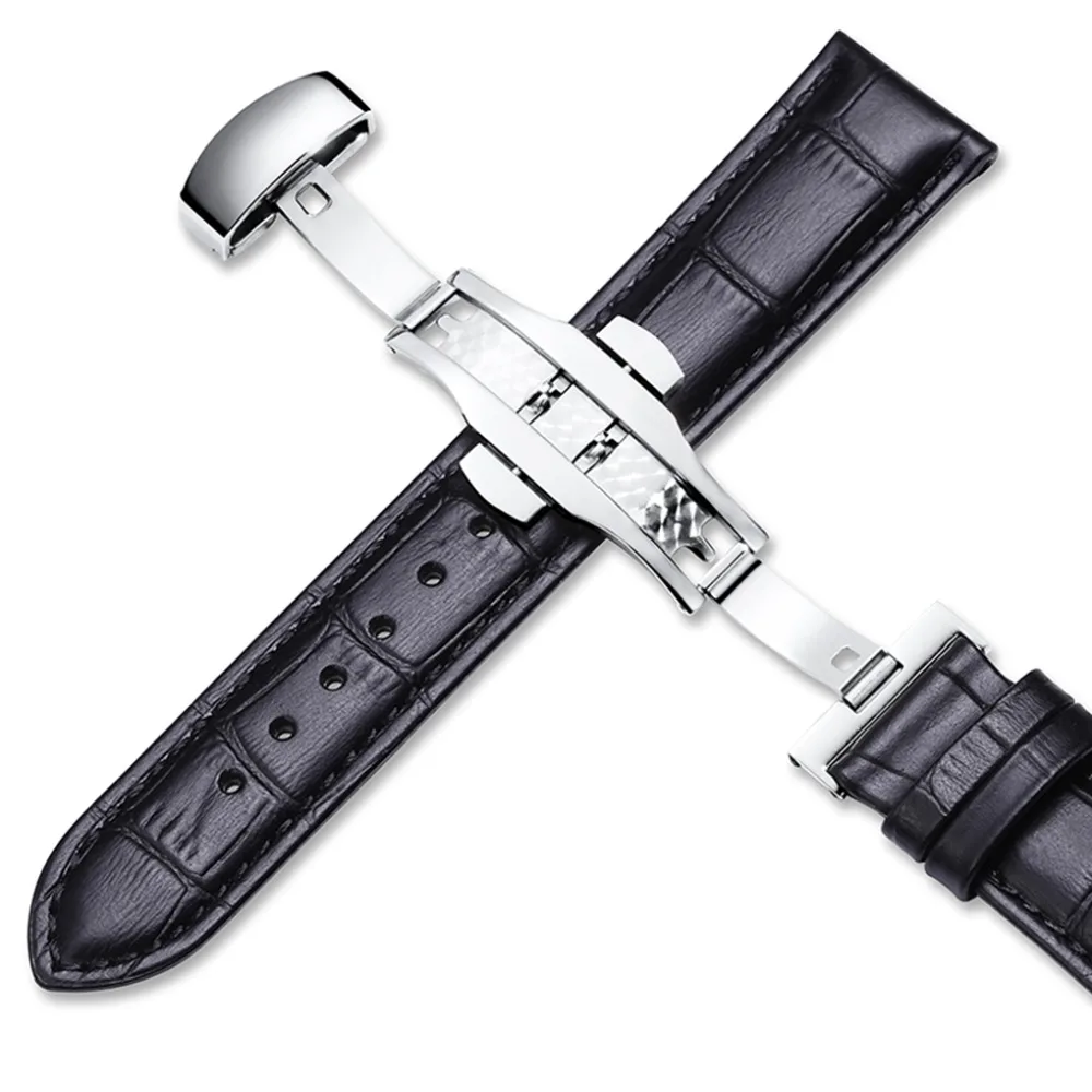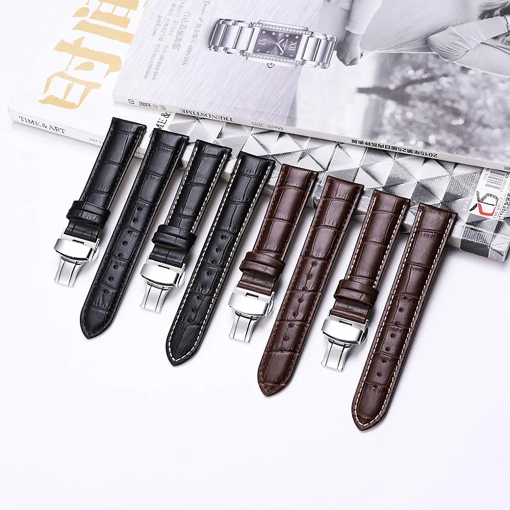 . Achat IStrap 18mm 19mm 20mm 21mm 22mm 24mm Noir Brun En Cuir Véritable bande de Montre En Argent boucle déployante Bracelet Pour Tissot Pas Cher Prix.