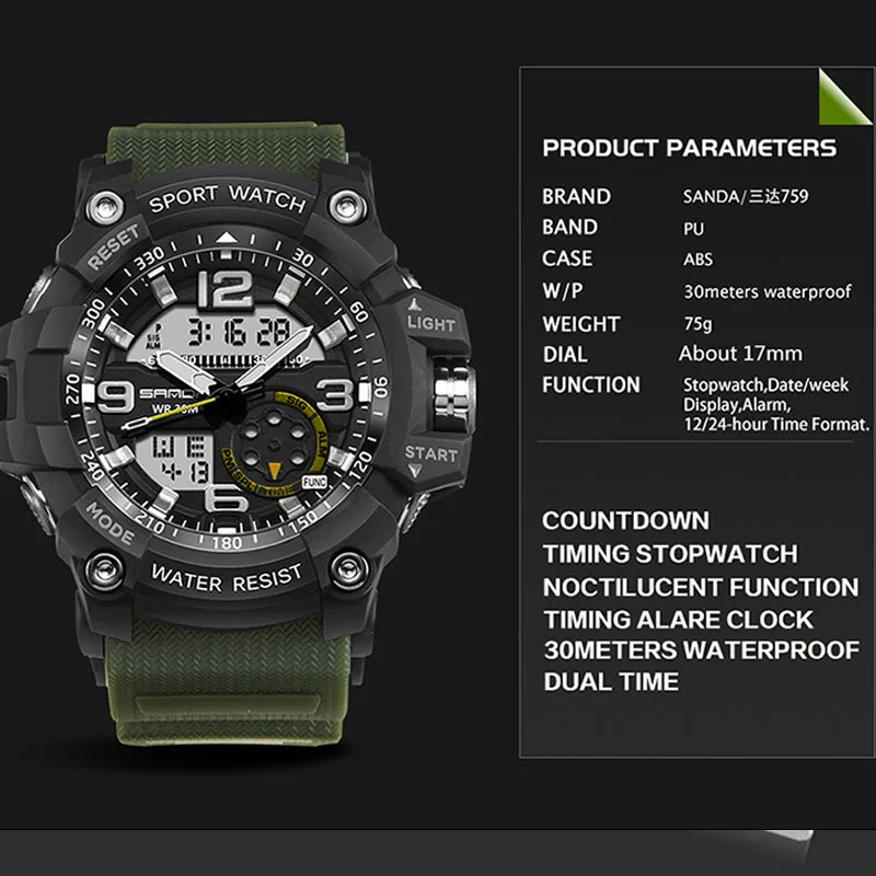 Acheter 2018 SANDA Hommes Sport Montres G Style Militaire Étanche Montres Choc Analogique Quartz Numérique Montre Hommes relogio masculino Pas Cher Prix