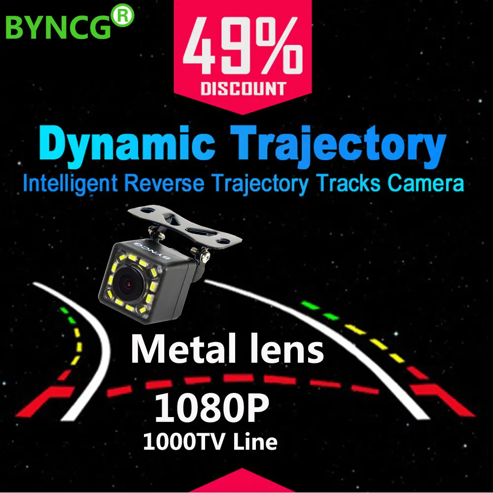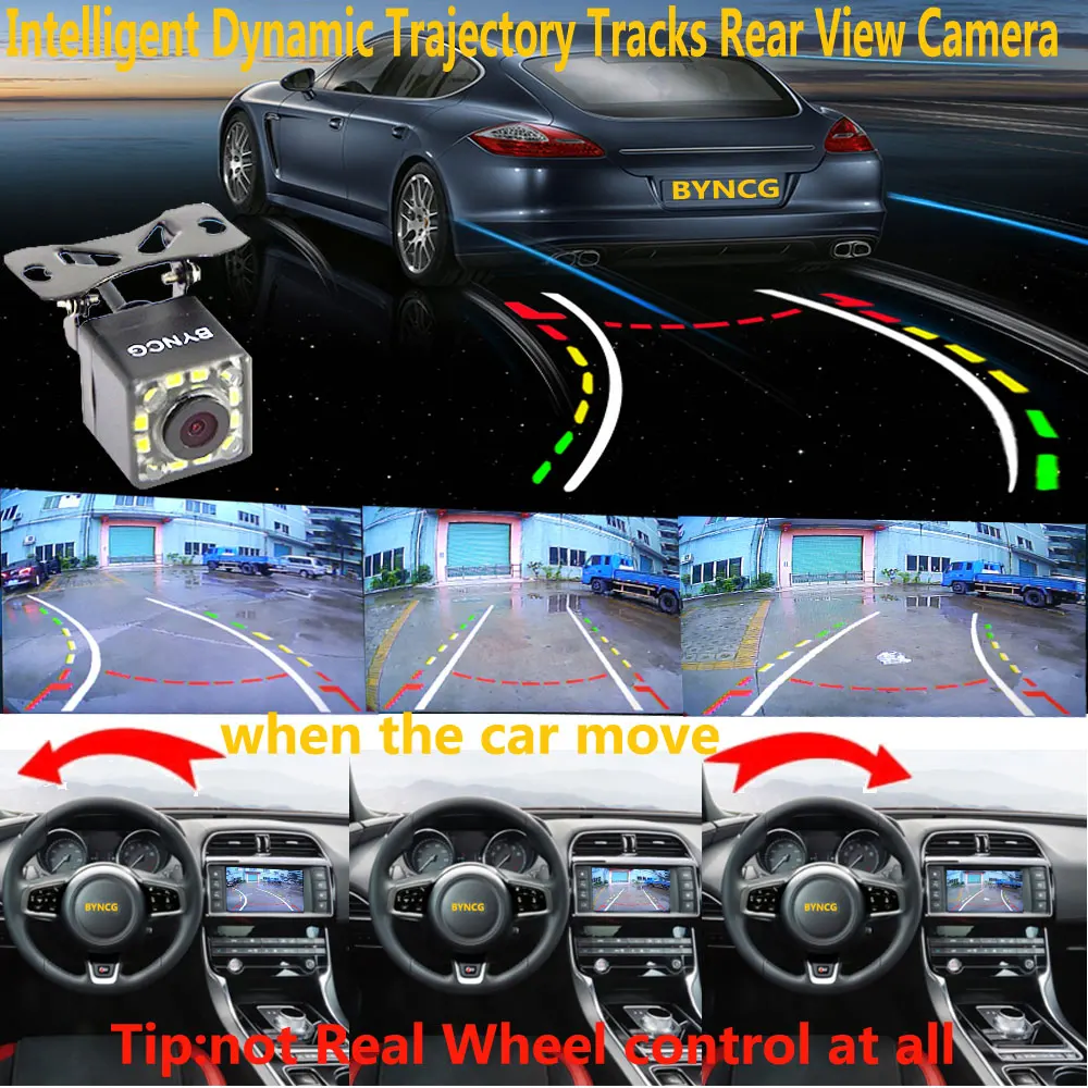 Achat Meilleur BYNCG Dynamique Intelligent Trajectoire Pistes Arrière Vue Caméra HD CCD Caméra De Recul De Sauvegarde Automatique de Recul Aide Au Stationnement Pas Cher Prix.