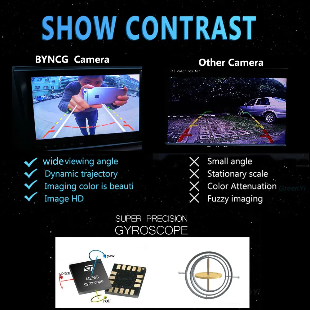 . Vente BYNCG Dynamique Intelligent Trajectoire Pistes Arrière Vue Caméra HD CCD Caméra De Recul De Sauvegarde Automatique de Recul Aide Au Stationnement Pas Cher Prix.