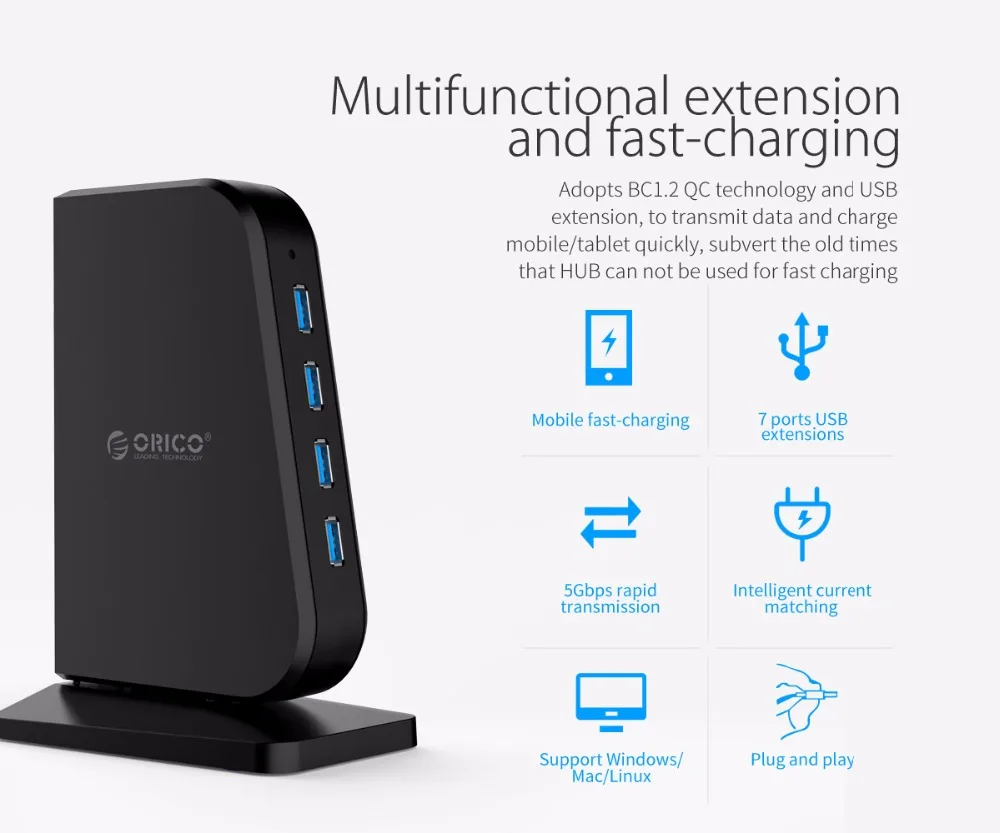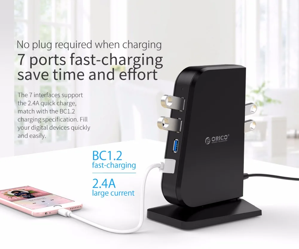 Achat ORICO USB 3.0 HUB 7 Ports USB3.0 5 Gbps Splitter 2.4A BC1.2 Charge Rapide Hubs pour Ordinateur Portable Chargeur pour iphone x samsung Pas Cher En Ligne