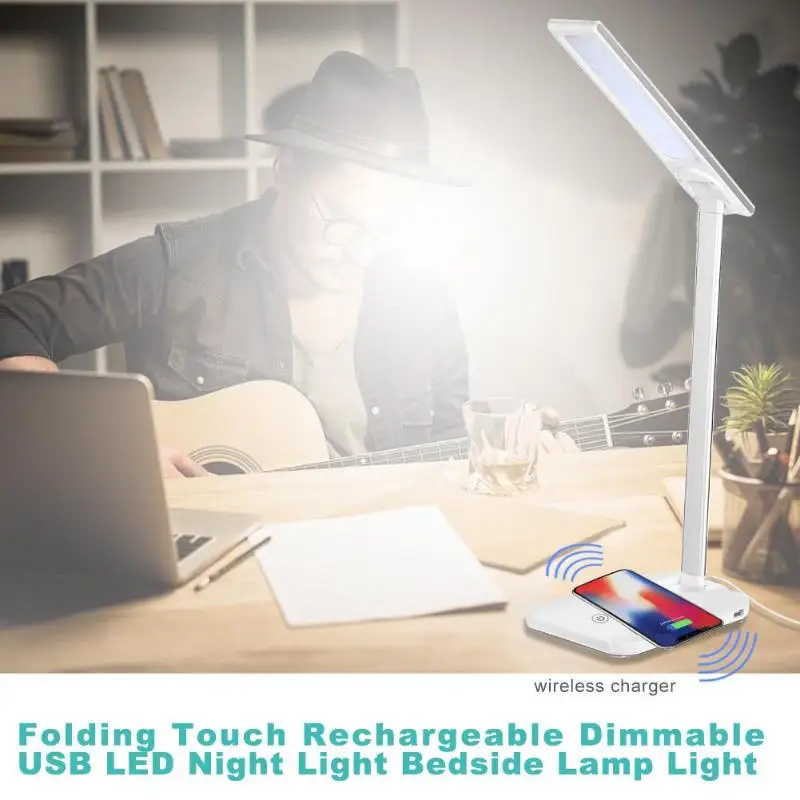 Acheter Meilleur USB Charge LED Lampe de Lecture Pliage Dimmable Tactile Lampe De Bureau Night Light Sans Fil Téléphone Chargeur pour iPhone X Pas Cher Prix.