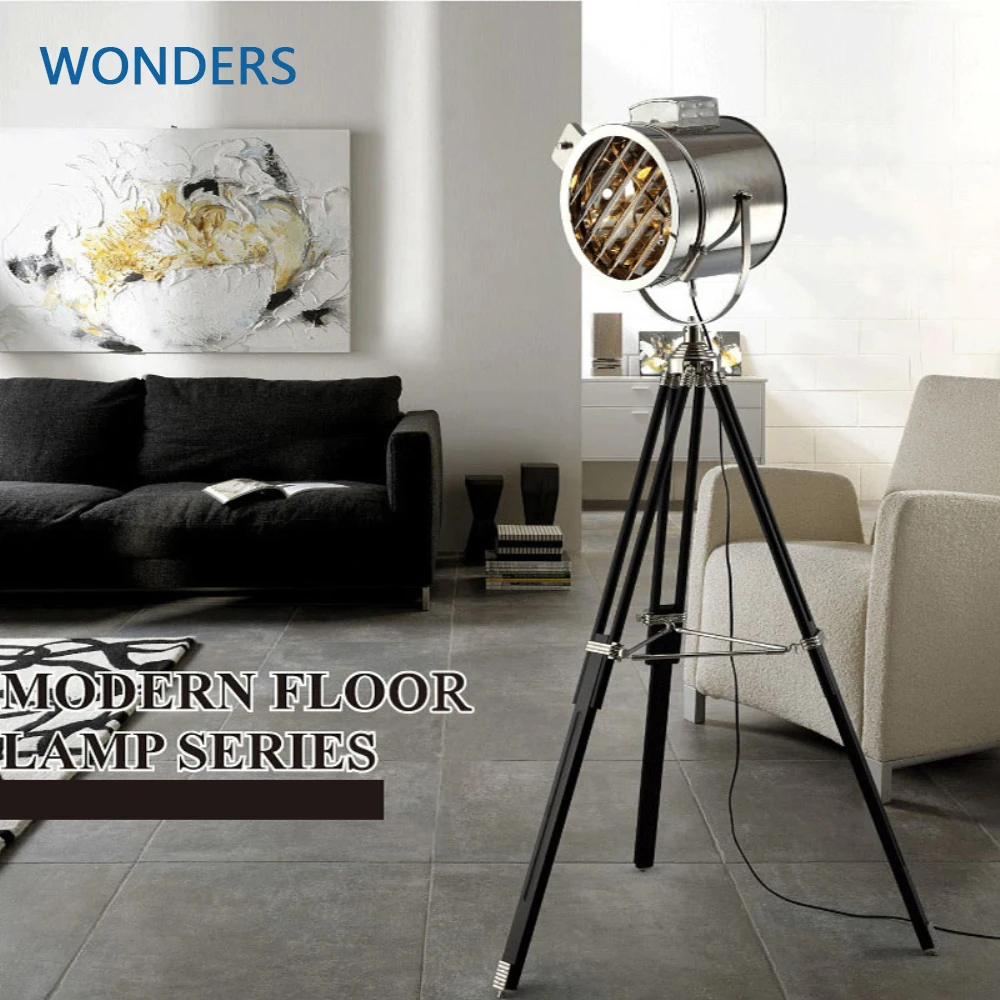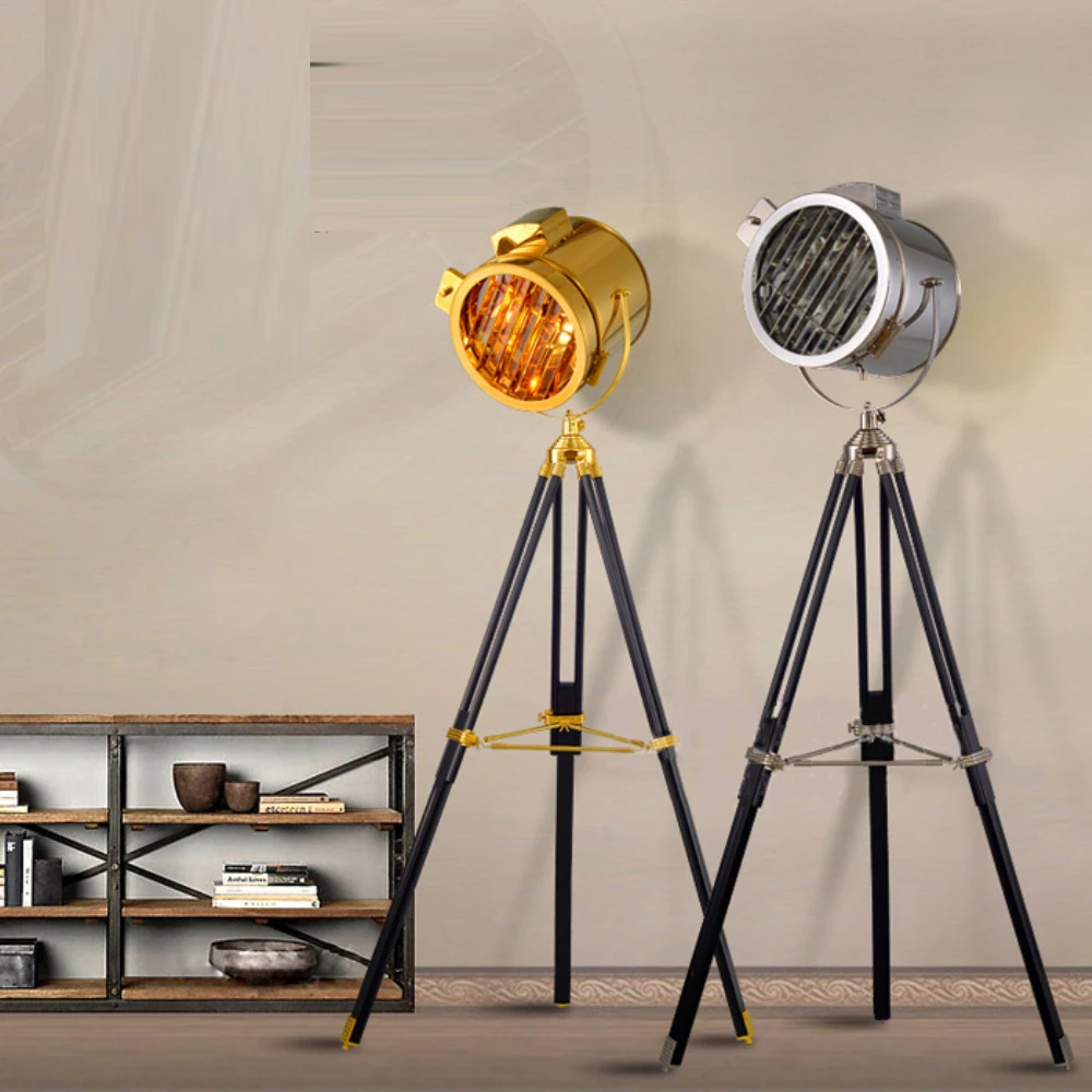 Acheter Meilleur Industrielle Bar Nordique Américain Studio de Création Rétro argent et d or Lampes De Sol Trépied Projecteur Supplémentaire Net Lampadaire Pas Cher En Ligne.
