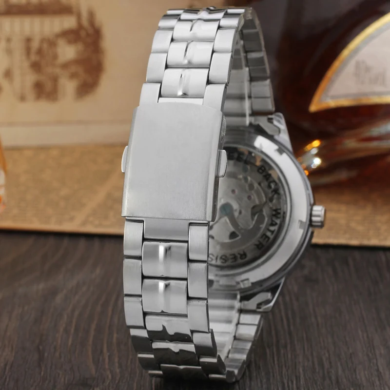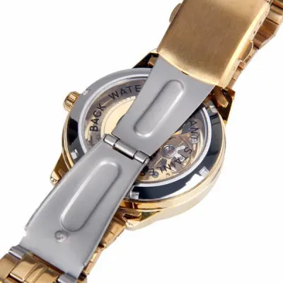 Achat Homme luxe Or Plein Acier Transparent Montre Squelette Automatique Mécanique montres Horloge Steampunk hommes Relogio Masculino 2016 Pas Cher En Ligne