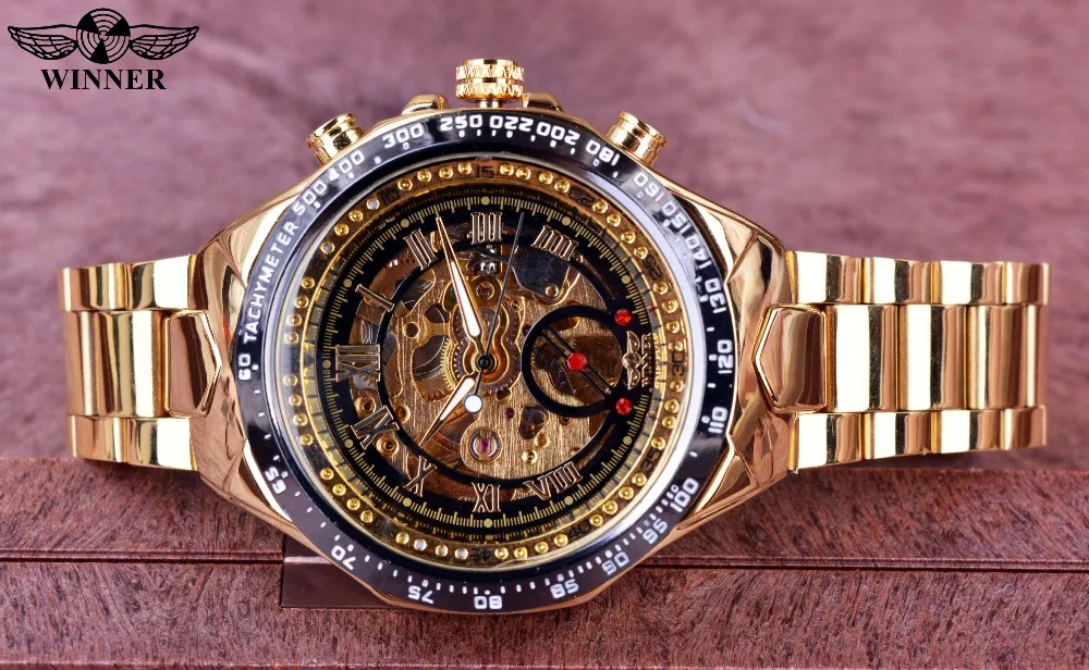 Acheter Meilleur Gagnant Nouveau Numéro Sport Conception Lunette Montre en Or Hommes Montres Top Marque De Luxe Montre Homme Horloge Hommes Automatique Squelette Montre Pas Cher Prix.