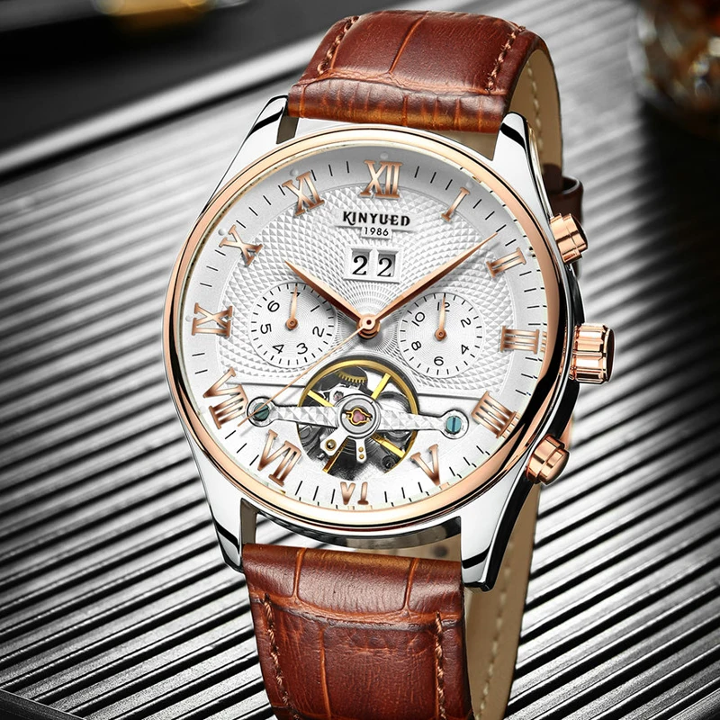 . Vente Kinyued Véritable Montre Mécanique Automatique pour Hommes Tourbillon à Remontage Manuel Montres Squelette Hommes Bracelet En Cuir Montre Bracelet Étanche Pas Cher En Ligne.