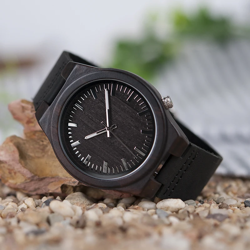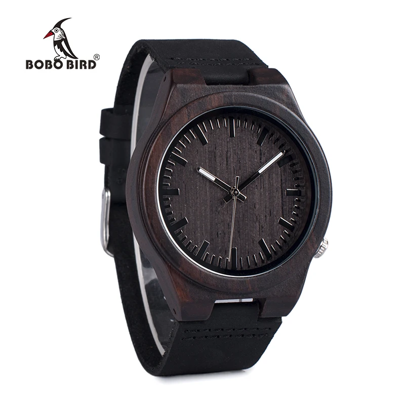 . Acheter BOBO BIRD WB12 homme Asymétrique Conception Ébène Montres En Bois avec Bande de Cuir Souple avec Boîte Cadeau comme Cadeau Dropshipping accepter OEM Pas Cher En Ligne.